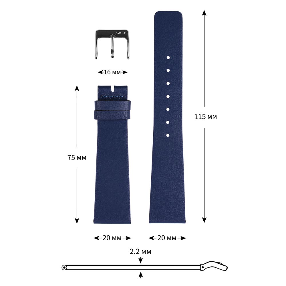 Ремень для часов "Mario Notti", S-40, 20 мм, синий, L
