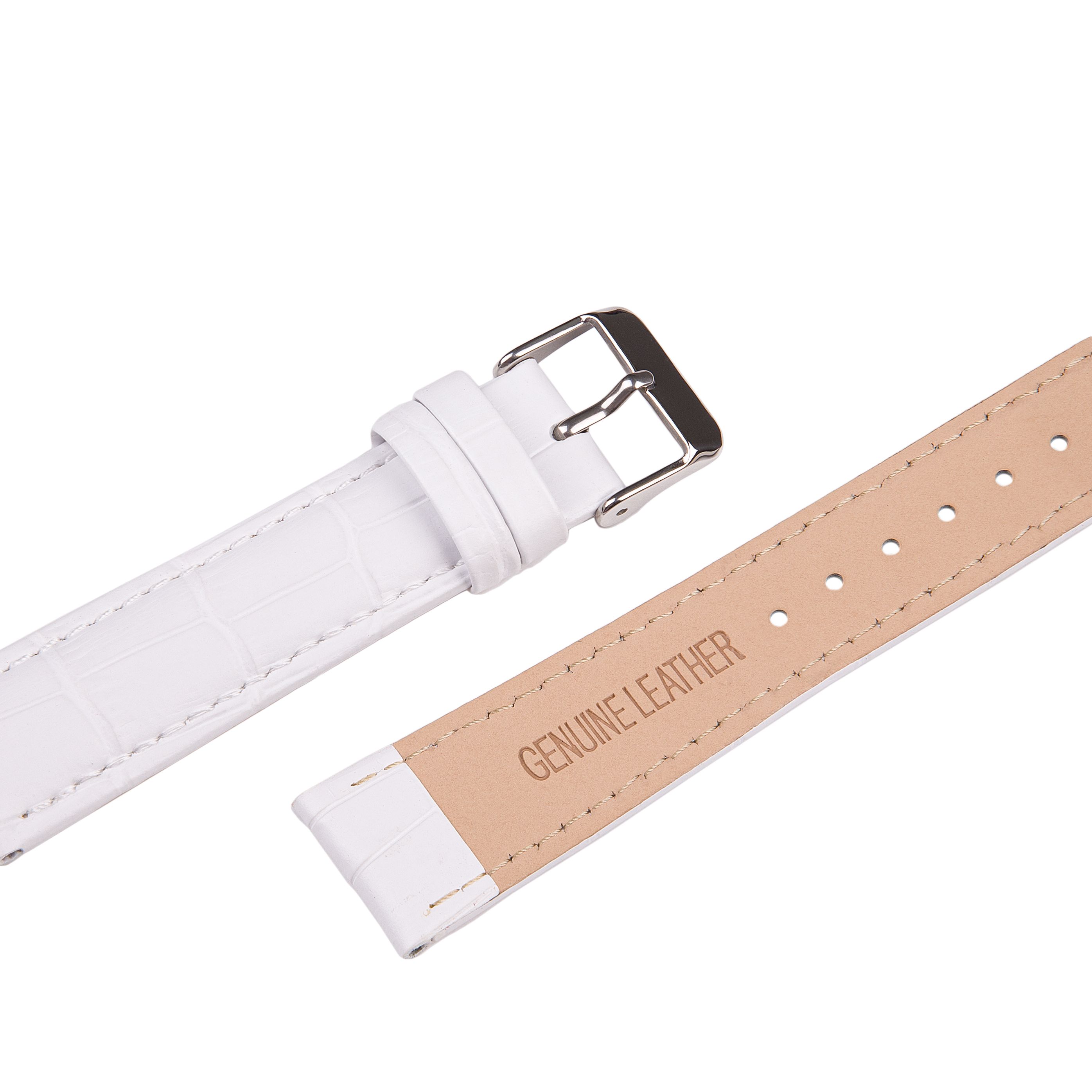 Кожаный ремешок для часов MM-Alliance S-01 размер 16 мм, Белый, длина L (75мм x115мм)