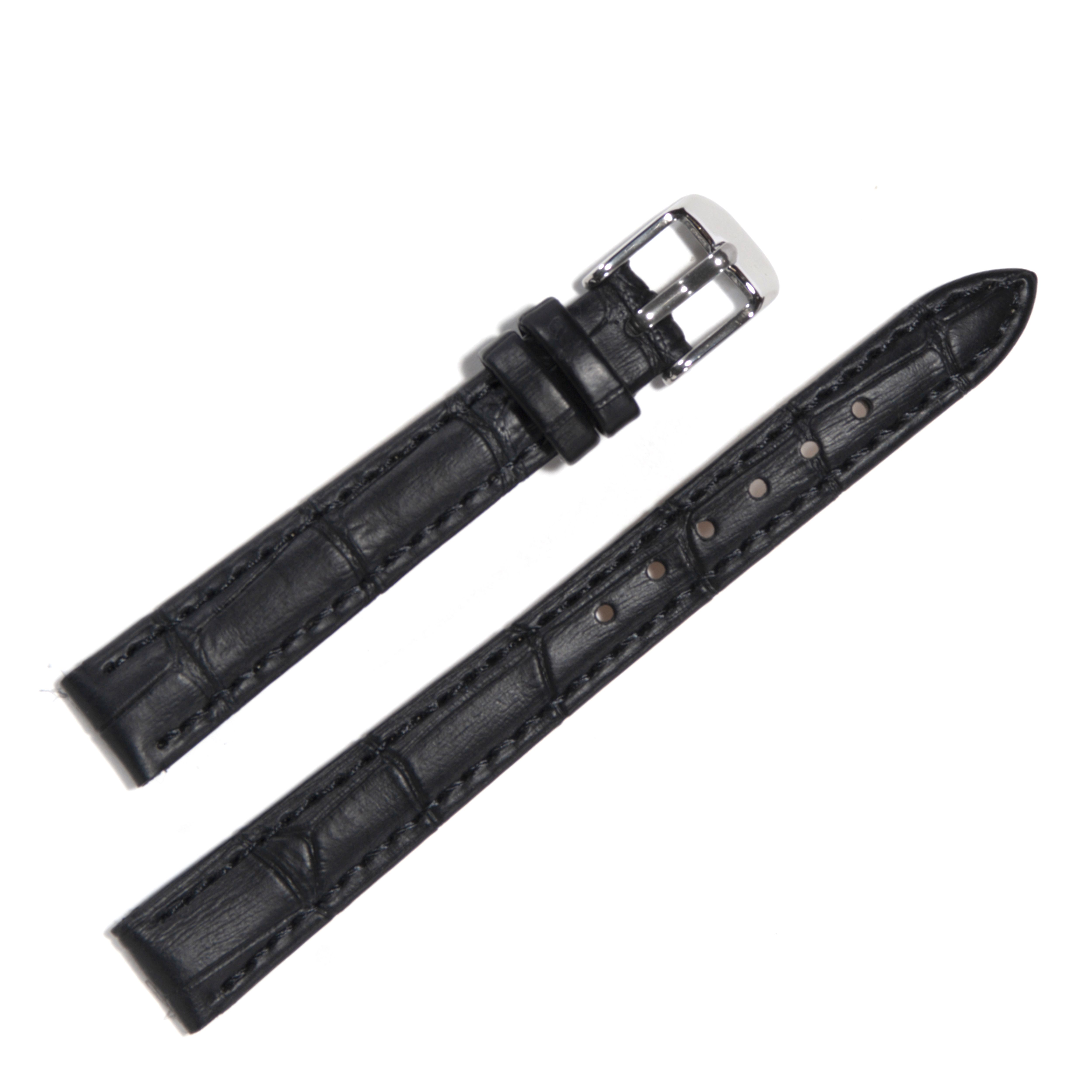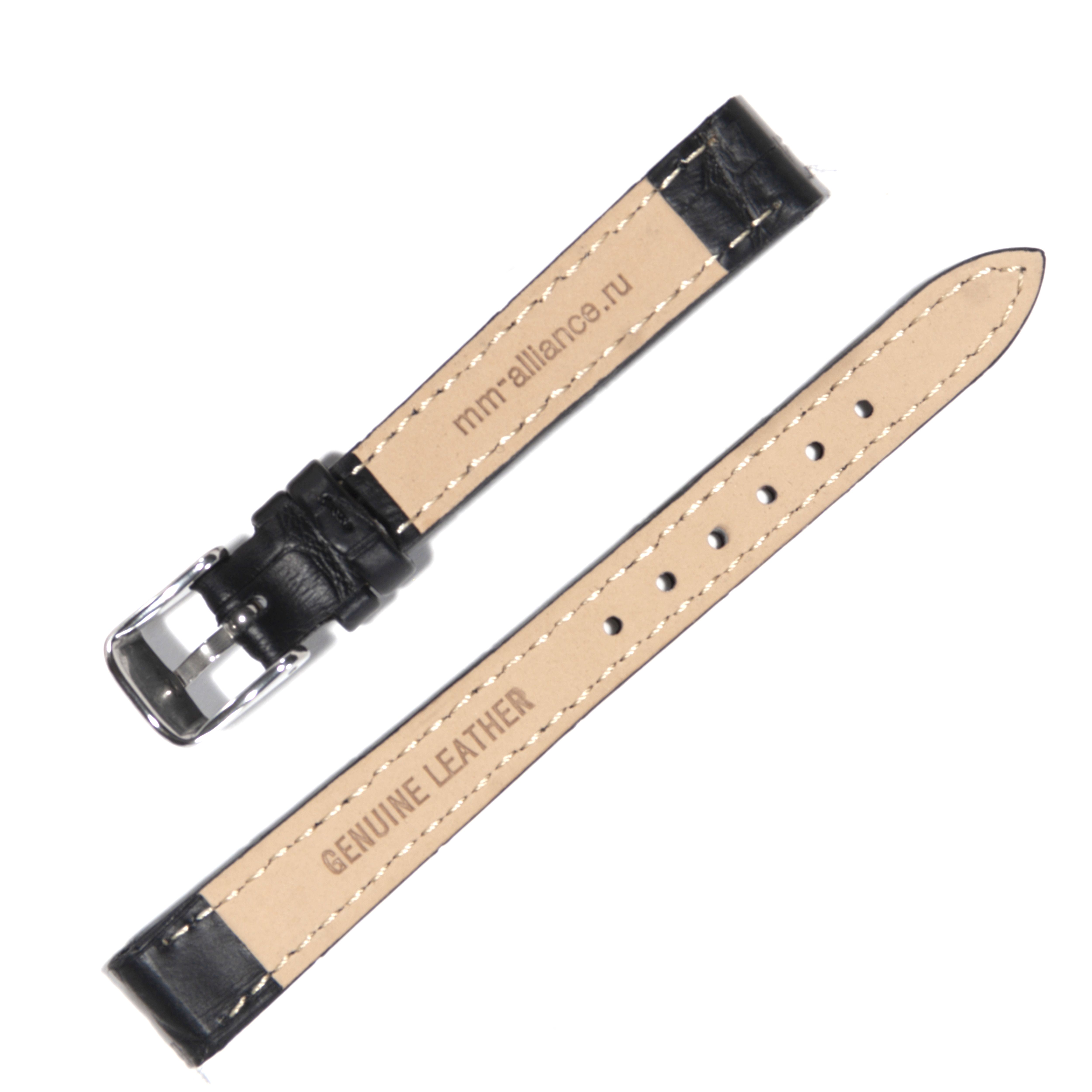 Кожаный ремешок для часов MM-Alliance S-01 размер 12 мм, Черный, длина M (65мм x105мм)