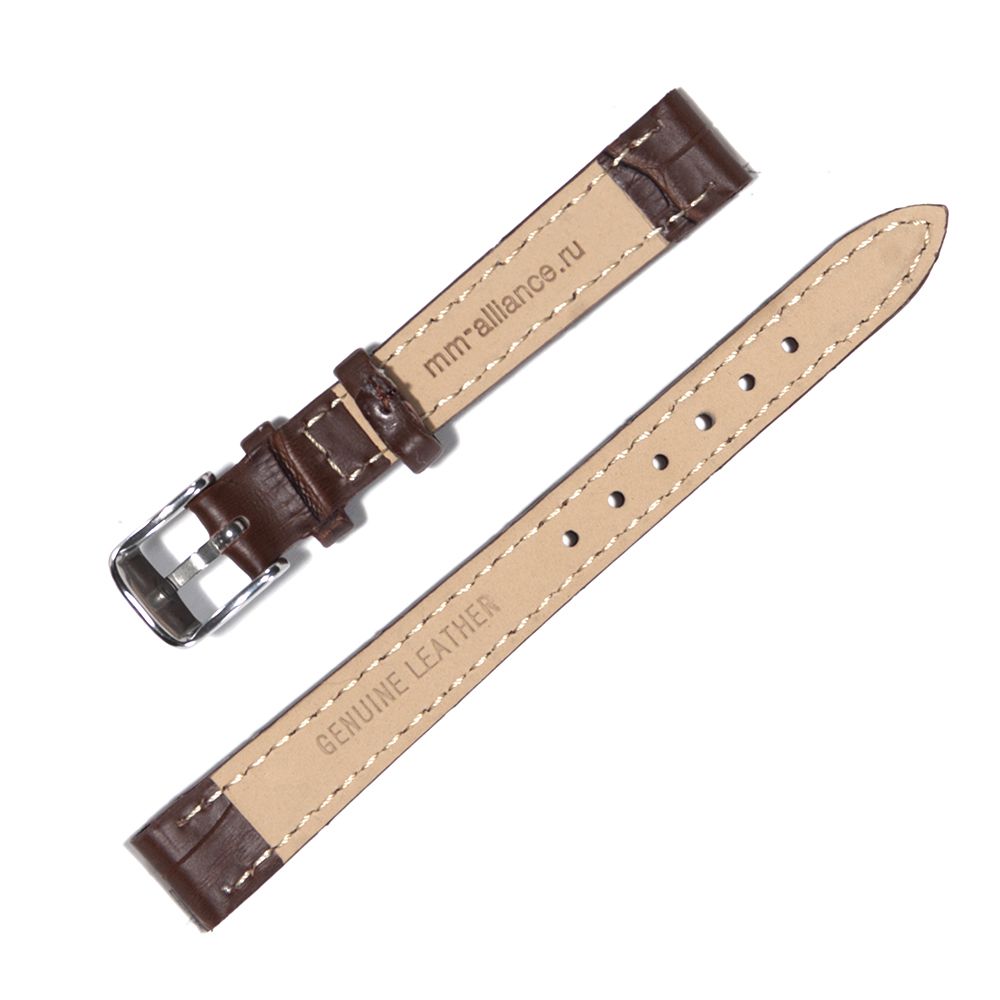 Кожаный ремешок для часов MM-Alliance S-01 размер 12 мм, Коричневый, длина M (65мм x105мм)