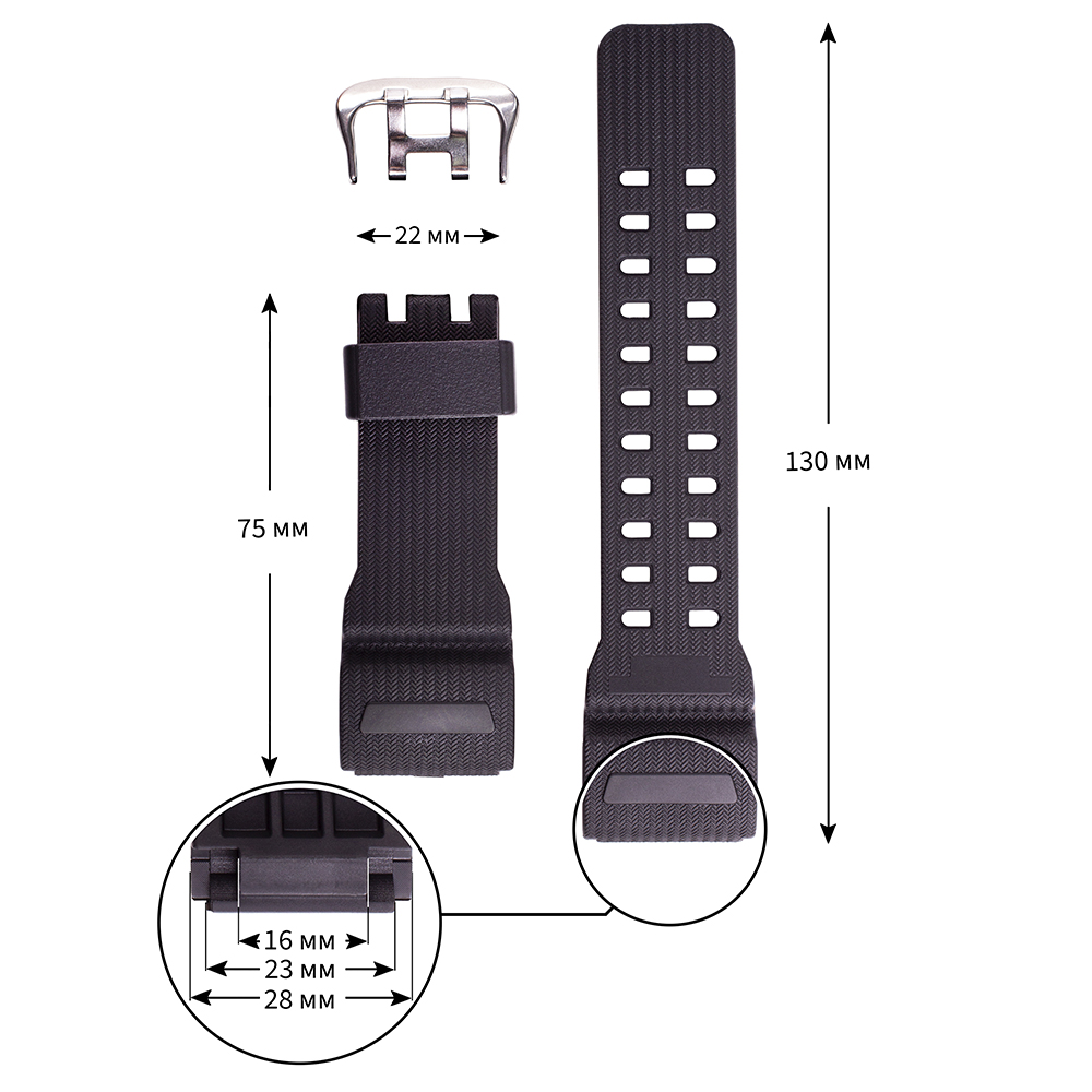 Ремешок силиконовый для часов С2009-19 черный 23*28*22